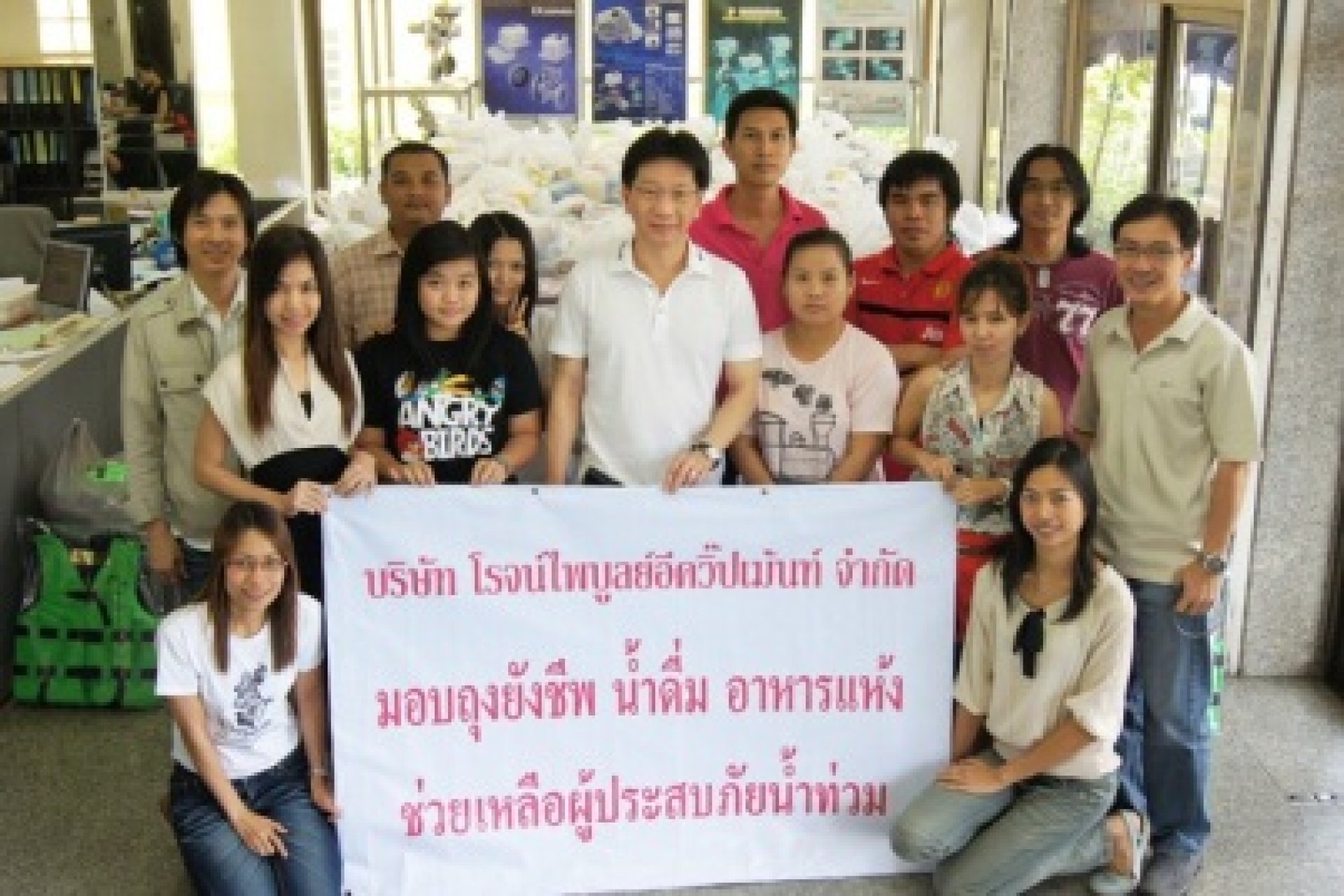 บริษัท โรจน์ไพบูลย์อีควิ๊ปเม้นท์ จํากัด ร่วมบริจาคถุงยังชีพ เพื่อช่วยน้ำท่วมประจําปี 2554