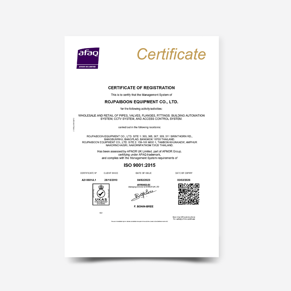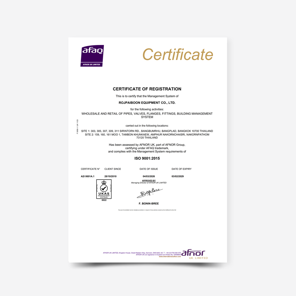 Awarded ISO 9001 version 2000 by AFAQ & BEST CERT