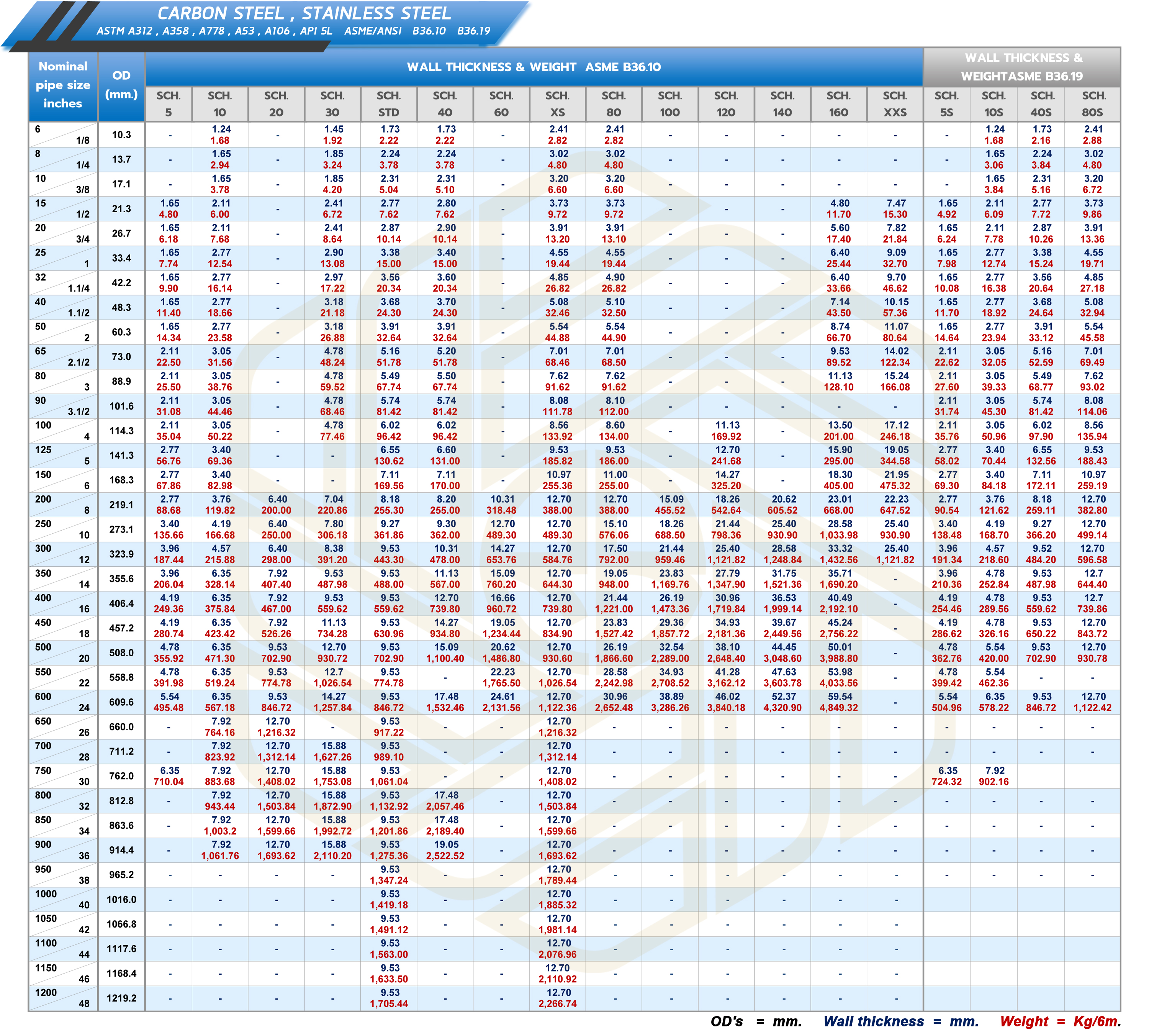 CARBON STEEL, STAINLESS STEEL SEAMLESS/WELDED PIPE WALL THICKNESS
